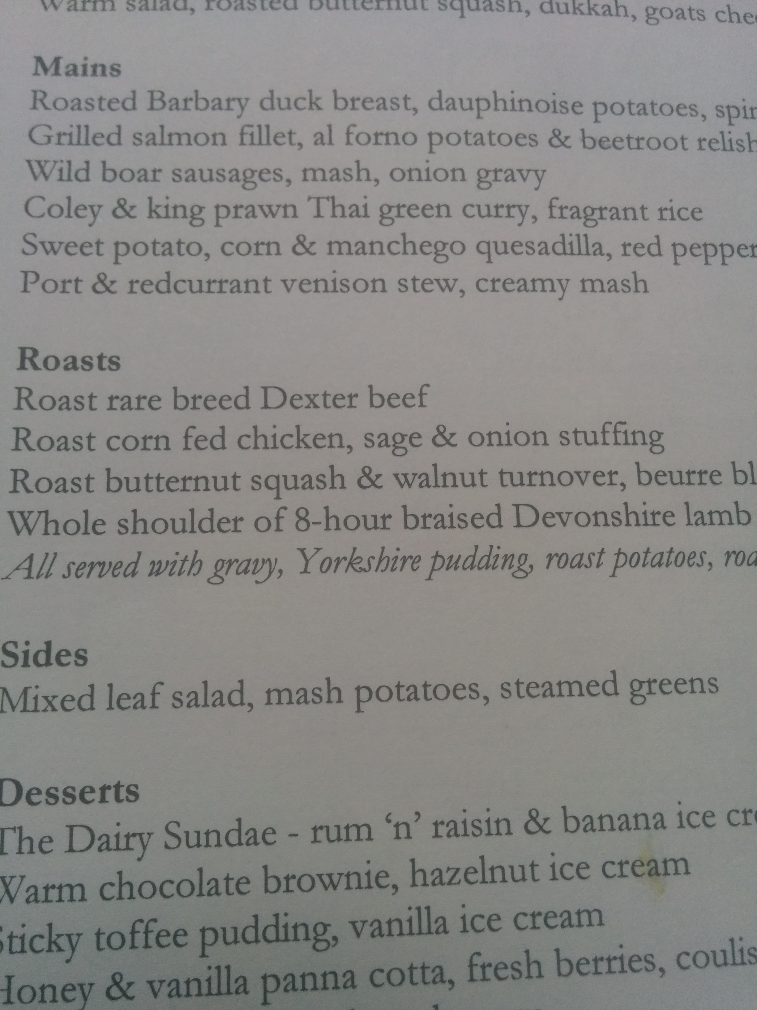 What did I think? Let’s start with the carrots. Innovative. Cut into long, thin strips, they were unlike any other carrot I’ve eaten. The cauliflower? Creamy. The potatoes? Crispy. What of the chicken? Moist and herby. I enquired about the chef’s methods but this is a pub that values its uniqueness and were admirably secretive once again.