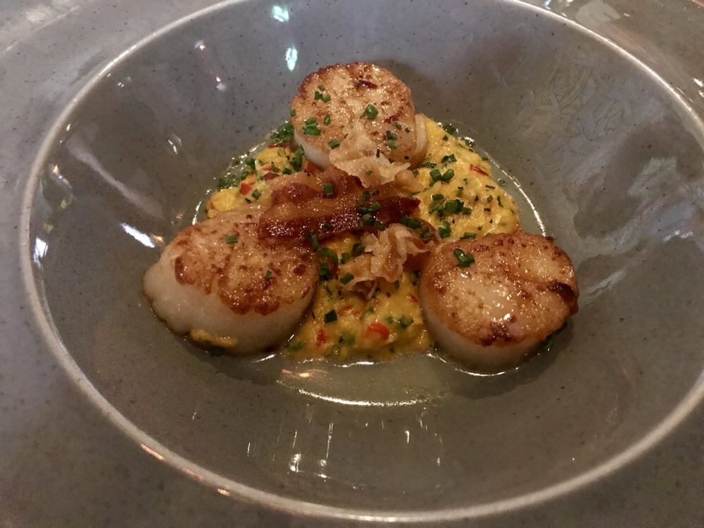 To start I thoroughly enjoyed scallops and bacon. The scallops were well cooked and the sweetcorn offered a pleasingly sweet contrast to the salty bacon. Sweetcorn’s sweet and bacon’s salty – who knew? I really am a fine addition to the food blogging world. Scoff.