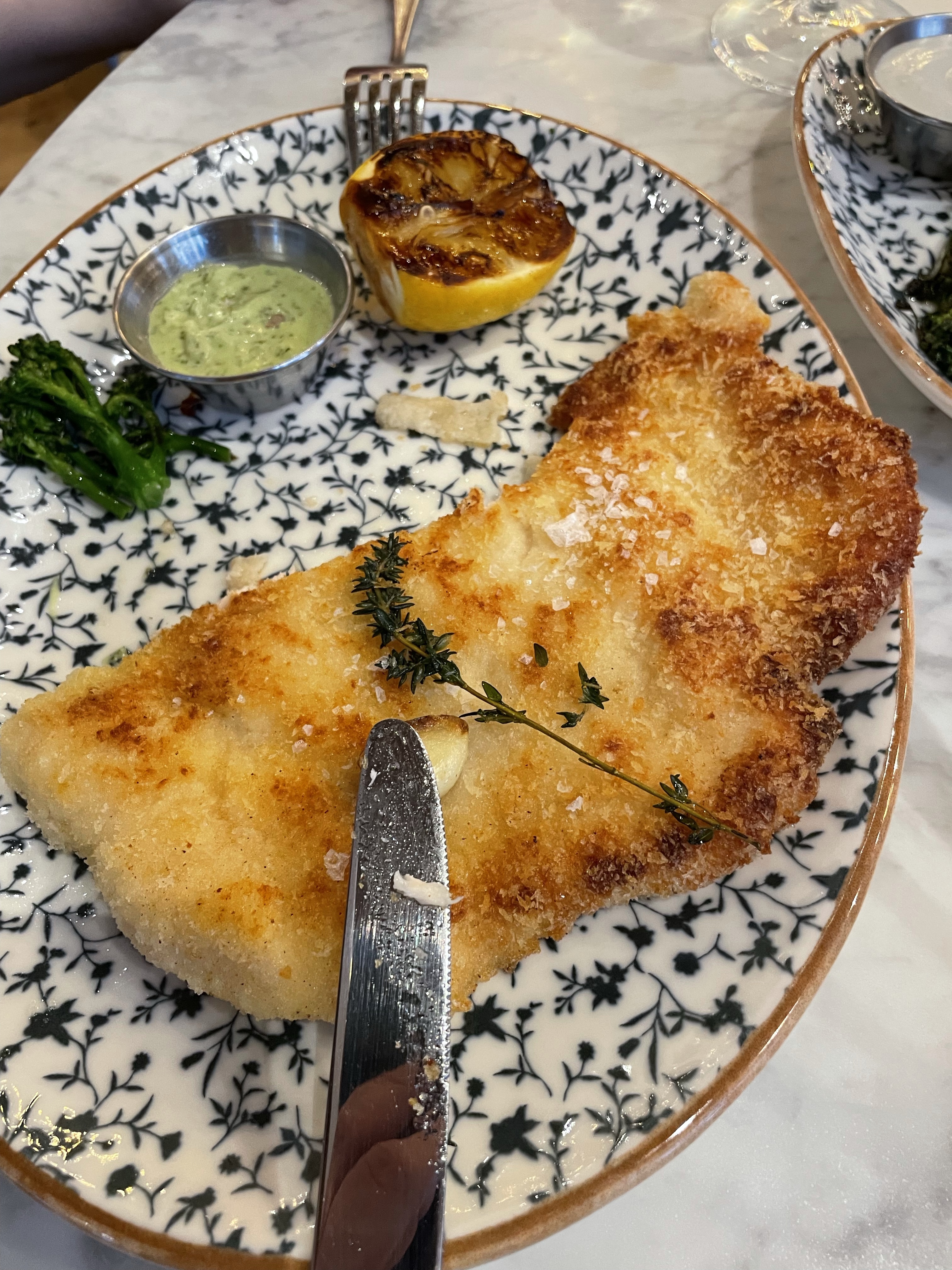 It is a beautiful space, and it has lots of nice booze. The food was fairly terrible. My wife’s schnitzel was paler than a albino’s ballsack.